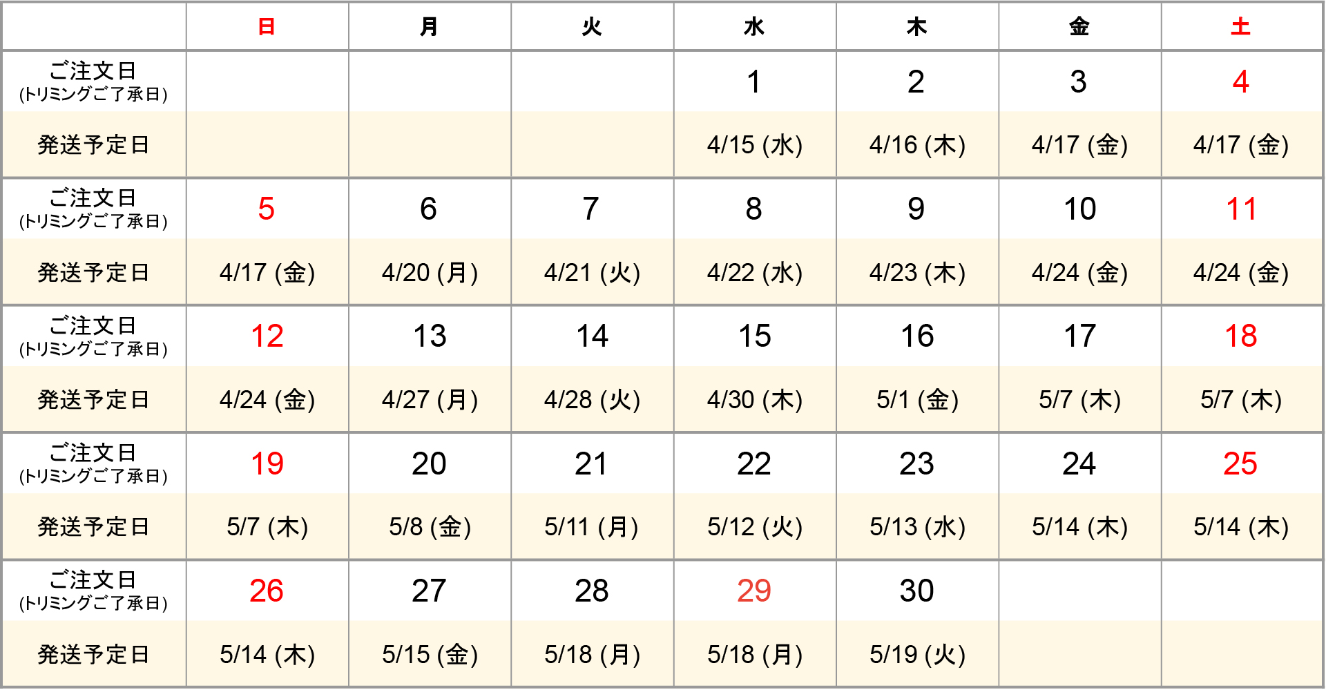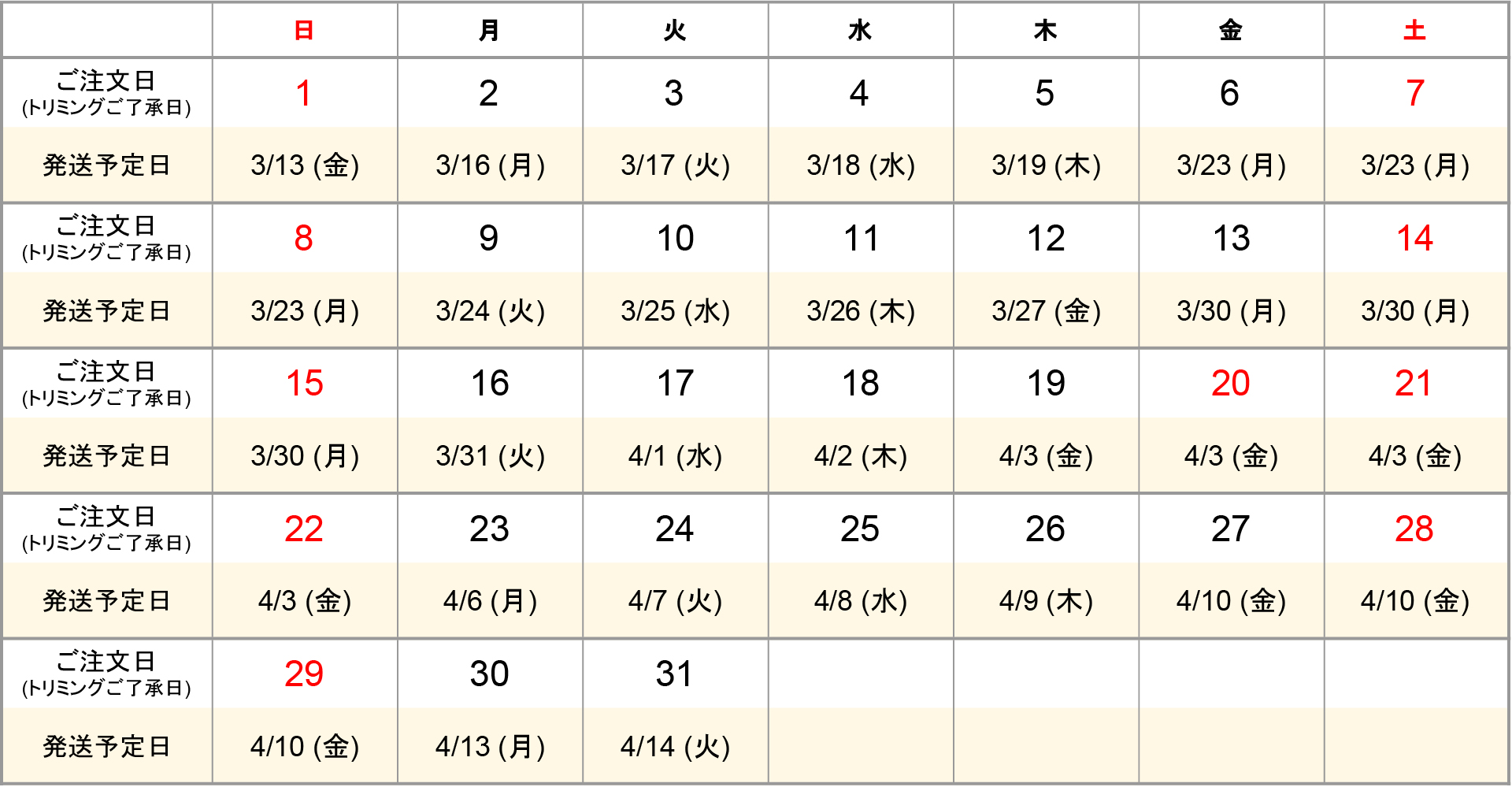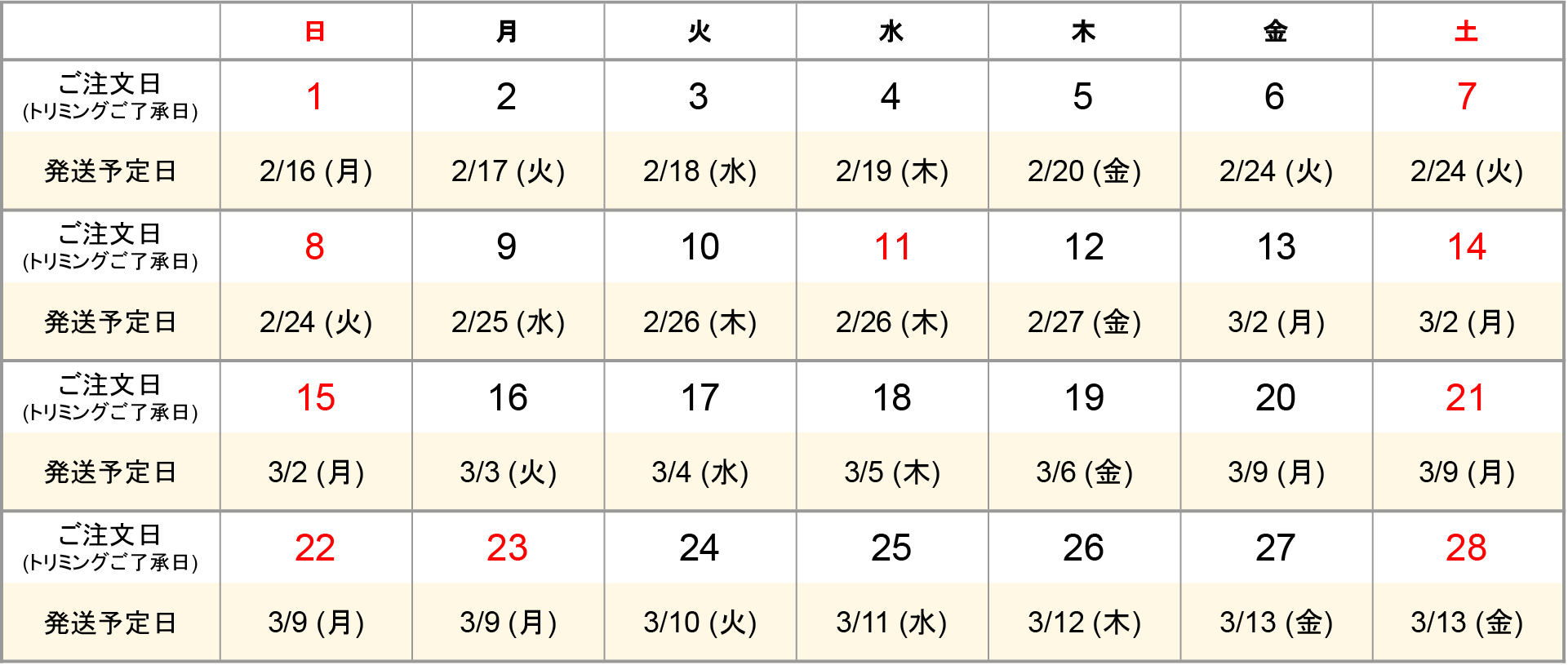 ¢¨¾Ü¤·¤¤ÇÛÁ÷ͽÄêÆü¤ÏÇÛÁ÷ͽÄêÆü¥«¥ì¥ó¥À¡¼¤ò¤´³Îǧ¤¯¤À¤µ¤¤¡£