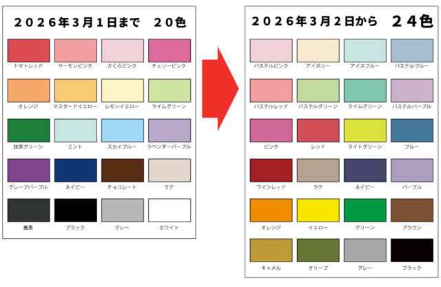 これまでのカラーは2026年3月1日受付分で取扱い終了となります。